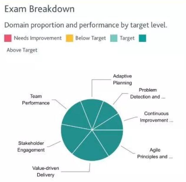 答:考生會看到的成績不是直接的分數,而是用A\T\B\N表示的,即Above Target(高于目標)、Target(達到目標)、Below Target(低于目標)、Needs Improvement(有待提高),PMI-ACP®考試共有七個過程組,考生最終得到的成績就是每個過程組所獲得的等級,比如7A等。