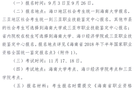 2018年下半年海南人力資源管理師報名時間為9月3日-26日,具體報名事項如下: