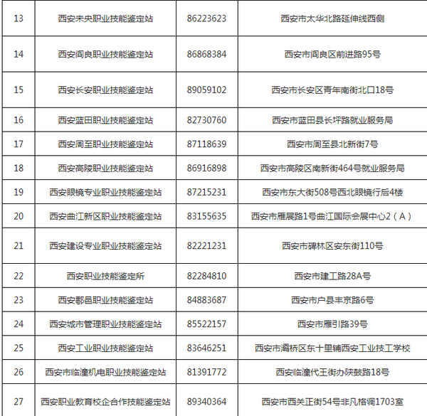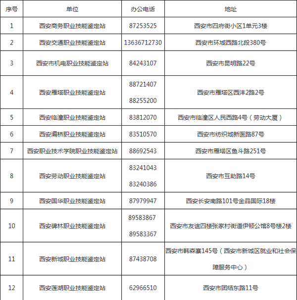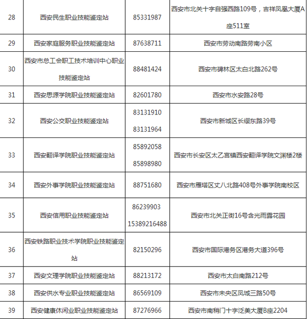 西安市市屬職業技能鑒定站(所)名單