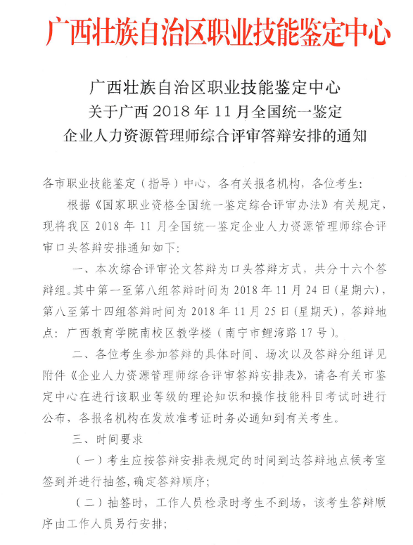 2018年11月廣西人力資源管理師綜合評審論文答辯為口頭答辯方式,具體答辯安排如下: