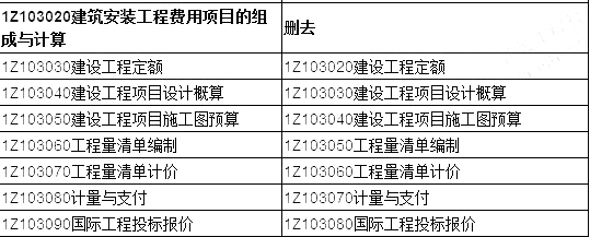 第一章中“設(shè)備租賃與購買方案的比選分析”是一個很難的知識點,附加率和年金法的稅金計算也刪除了。第三章刪除“建筑安裝工程費用項目的組成和計算”。