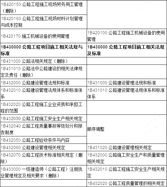2018年一級建造師公路工程教材目錄與2018年目錄相比較,2018年一級建造師公路教材目錄變動情況如下:注冊會員即可免費獲取一建免費資料 點此注冊>>