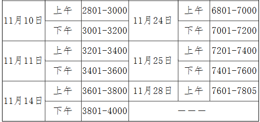 11月1日-11月28日(法定工作日工作時間),具體安排如下表