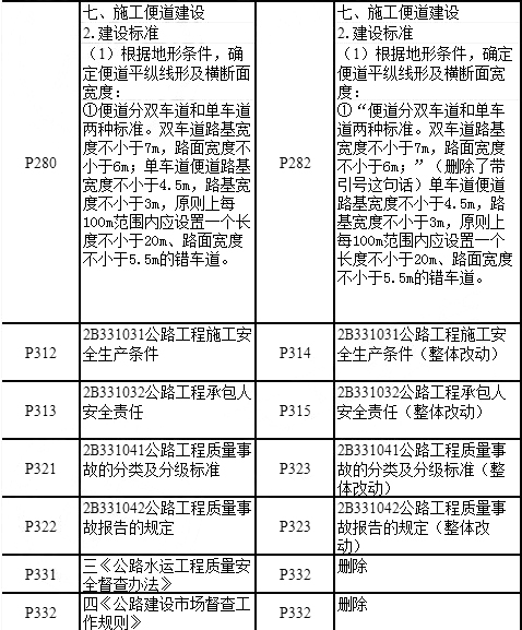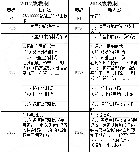 2018年二級建造師公路實務教材變化對比如下: