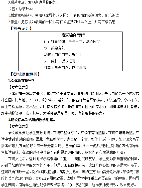 2017下半年教師資格證面試真題及答案:小學語文(第三批)