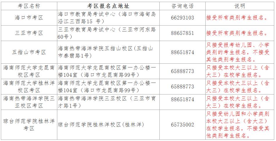 查詢中小學教師資格考試相關信息,可登錄教師資格考試網 (http://www.ntce.cn)、海南省教育廳網站(http://edu.hainan.gov.cn)和海南省考試局網站(http://ea.hainan.gov.cn)查閱。有關政策問題,咨詢省教育廳師資管理處,電話:65236870;有關認證問題,咨詢省教育廳行政審批辦公室,電話:65203038;有關考試問題,咨詢省考試局,電話:65851886。