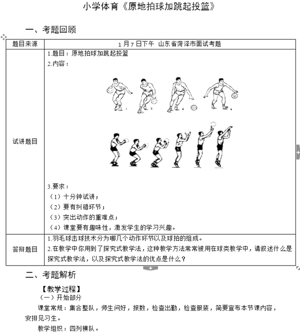 2017下半年教師資格證面試真題及答案:小學體育(第三批)
