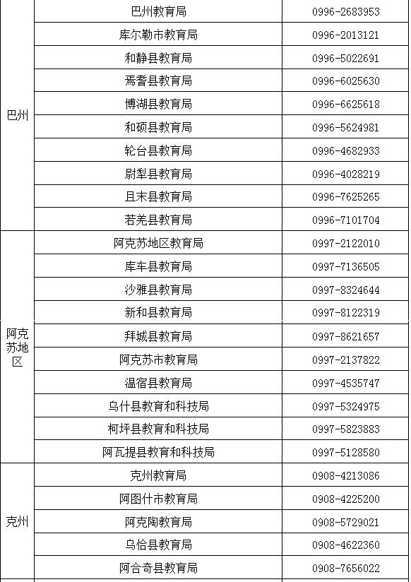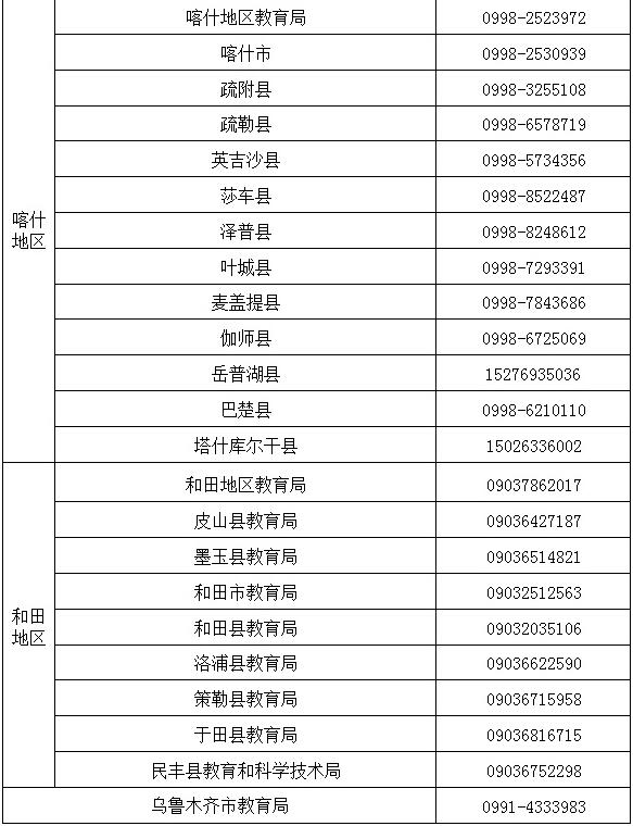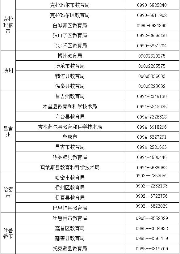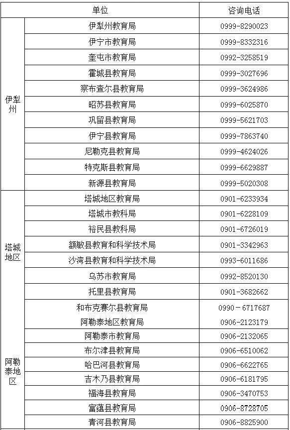 新疆各地、州、市教師資格認(rèn)定咨詢電話