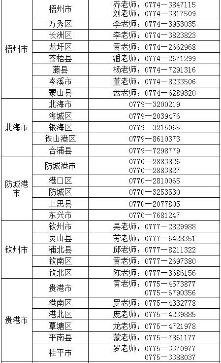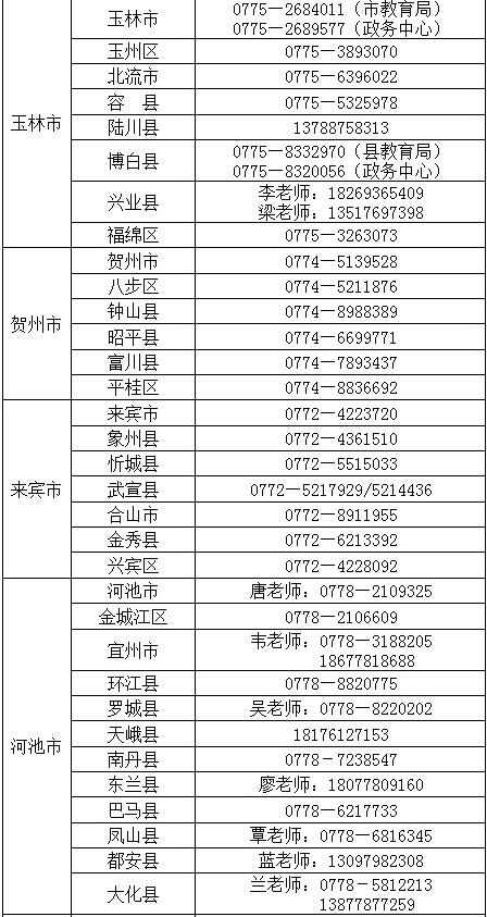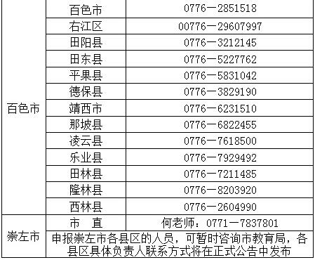廣西各地2018年春季教師資格認定聯系電話