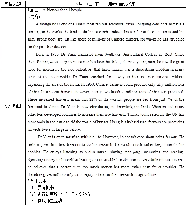 Knowledge aim: Students will master some new words like“hybrid rice”and some phrases like “be satisfied with”.They can also know more information about Dr Yuan.