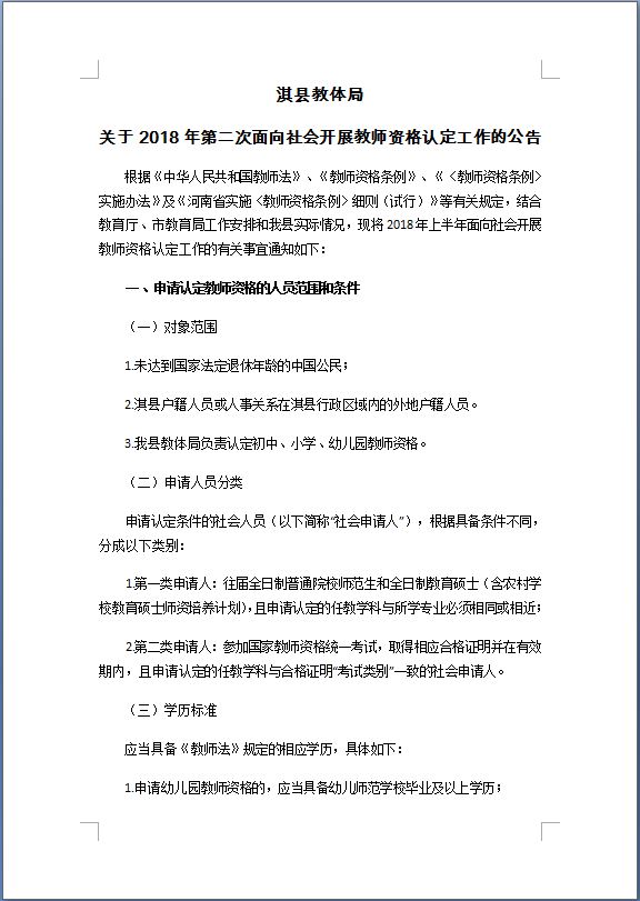 2018年第二次河南淇縣教師資格認定工作公告