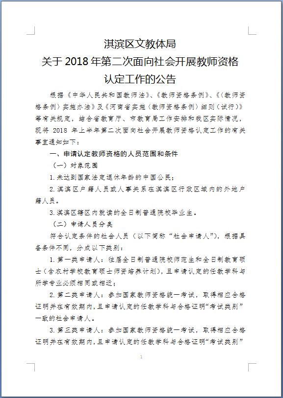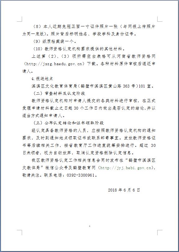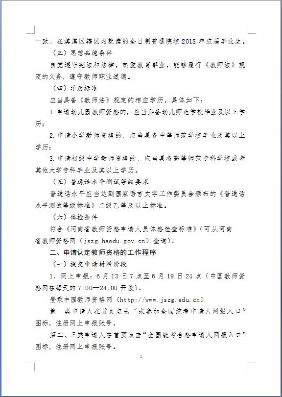 2018第二次鶴壁市淇濱區教師資格認定公告