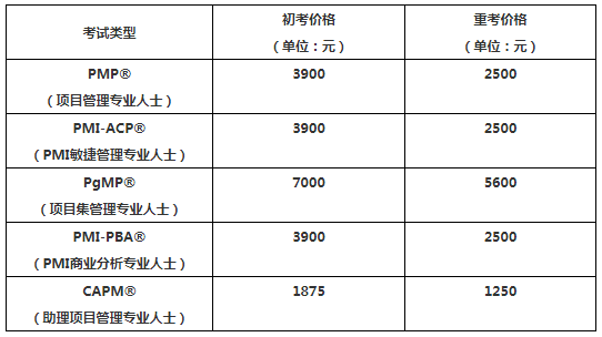 報名費用:PMP®考試初考報名費用3900元,英文有效期內重考報名費用2500元。(需要注意的是:報名費用每隔幾年就會有調整,請以具體考期的費用為準,費用是由基金會收取) 。