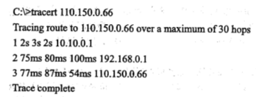 ●使用tracert命令進行網絡檢測,結果如下圖所示,那么本地默認網關地址是(64)。
