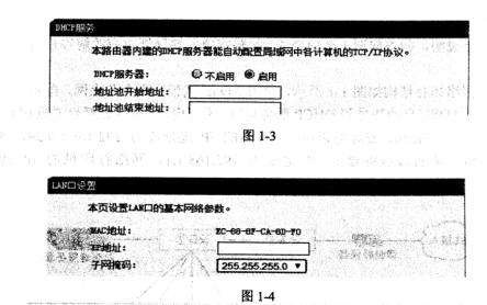 圖1-2為路由器的ADSL配置頁面,WAN口連接類型應選擇();圖1-3為路由器的DHCP服務頁面,地址池開始地址為();結束地址為();圖1-4為路由器的LAN口配置頁面,此處的IP地址為()。