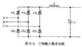 對于三相輸入的UPS電源的輸入電路一般采用6脈沖晶閘管相控整流器,如圖6-6所示。對于輸出端無隔離變壓器的UPS電源,為了實現UPS電源輸入與輸出之間的隔離,在AC/DC整流輸出與DC/AC逆變器輸入電路之間采用了DC/DC變換器。輸入與輸出之間利用變換器的高頻變壓器進行隔離。