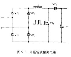 另一種輸入電路為升壓斬波整流電路,如圖6-5所示。閣6-5中整流二極管VD-VD4組成橋式全波整流電路,開關管VT,的PWM驅動是跟蹤輸入電流的正弦波控制,使交流輸入電流波形為正弦波,諧波電流成分有很大改善,而輸入功率因數接近于1。這種輸入電路在UPS電源中應用較多,尤其是輸出容:軟3kVA-20kVA的笮相輸入UPS電源多采用此種電路。