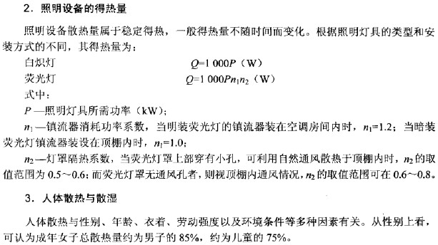 照明設備散熱量屬于穩定得熱,一般得熱量不隨時間而變化。根據照明燈具的類型和安裝方式的不同,其得熱量為: