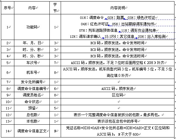 10、調度命令信息正文超過600字節時,應將命令分包發送,每包長度不超過600字節,最多兩包。
