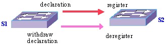 GARP是Generic Attribute Registration Protocol的縮寫。該協(xié)議是為了建立一種屬性傳遞擴散的機制,以保證采用該協(xié)議實體能夠注冊和注銷該屬性。如下圖,GARP屬性傳遞的過程主要是:采用發(fā)送聲明(Declaration)、接收到聲明進行屬性注冊;發(fā)送取消聲明(withdraw declaration)、接收到取消聲明進行屬性注銷。