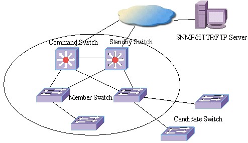 4)候選交換機: 候選交換機,沒有加入任何集群但有集群能力、能夠成為集群成員的交換機稱為候選交換機。