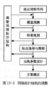 網絡拓撲結構(即基站布局)確定后要根據勘察、覆蓋預測、容量規劃的結果作反復的調整,如圖15-3所示。