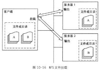 NFS基于客戶機/服務器結構,每個提供文件共享的設備被認為是服務器端,每個需要遠程文件操作的設備被認為是客戶端。對于不同的文件操作,某一個具體的設備可以同時承擔服務器和客戶端。通過服務器的程序管理文件系統中文件和目錄的輸出,使它們可以為其他設備使用。通過客戶端的程序管理文件和目錄的掛載,使它們可以為本地系統使用。NFS的掛載通過掛載協議實現。通過一系列操作,非本地的文件和目錄掛載在本地設備上,掛載以后,依據NFS協議,本地設備即可對其中的文件和目錄進行操作,如圖10-16所示。