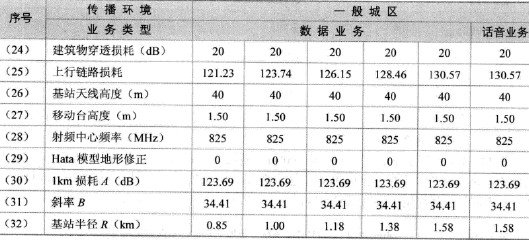 表15-14所示給出了cdma2000lx800MHz系統(tǒng)在一般城區(qū)的反向鏈路預(yù)算表,其中移動(dòng)臺(tái)的有效全向發(fā)射功率為200mW,小區(qū)邊緣覆蓋率為75%,傳播模型為Okumura-Hata模型。對(duì)不同的傳播環(huán)境可采用相應(yīng)的修正因子,實(shí)際的修正因子需通過(guò)模型校正工作得到。