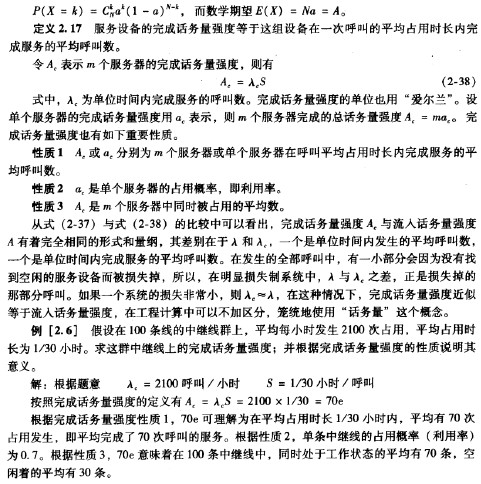 對于等待制系統來說,如果等待時間不限,那么流人系統的話務童都能被處理,只是有一些呼叫要等待一段時間才能得到接讀。對于明顯損失制系統來說,流人系統的話務量有一部分被處理了,另外一部分則被“損失”掉了。我們把流人系統的話務量叫做流入話務量或流人負載。完成了接讀的那部分話務最叫做完成話務最或完成負載。流入話務量與完成話務量之差,就是損失話務量或損失負栽。顯然,在等待制系統中,如果等待時間不限,則流人話務量等于完成話務量。因為在這種情況下沒有損失掉的話務量,只有被延遲處理的話務量。