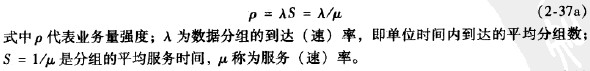 數據通倌如果采用分組交換方式,交換系統采用等待制服務,分組丟失率可以忽略,那么流人和流出的業務量強度將相等,業務最強度仍可以用式(2-37)定義,這里改寫為: