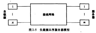 電路交換系統是一種典型的設備共享系統,所謂服務設備泛指各種在電路接續過程中,為用戶提供服務的共享資源。在分析討論中,服務設備具體是哪種并不重要。用戶是產生話務量的源泉,稱為負載源(或話源),負載源的真正含義要廣泛得多,一般地說,凡是向本級設備送入話務量的前級設備,都是本級的負載源。圖2-5給出N個負載源共享m個服務器的模型。