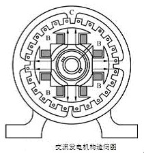 通信部門用的一般都是三相交流發電機,三相交流發電機一般都做成三相的電樞繞組,均勻分布在由硅鋼片迭成的定子鐵芯內圓周上。定子旋轉磁極上繞有勵磁線圈繞組,與旋轉磁極同一轉軸上裝有滑環和滑環相接觸的電刷,產生發電機旋轉磁場的電流就是通過電刷和滑環引入勵磁繞組的。