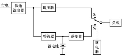 1)后備式UPS結構簡單、價格便宜、噪聲低,但絕大部分時間,負載得到的是稍加穩壓處理過的“低質量”正弦波電源,通信生產中不采用。原理圖如下:
