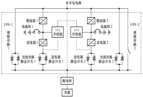 下圖為1+1型并聯(lián)冗余供電系統(tǒng)圖
