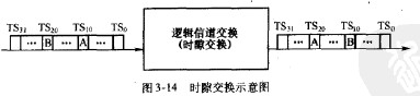 我們知道,在PCM時分復用一次群中,每一路基帶信號占用幀內的一個時隙,且在每幀中都將占有相同編號的時隙。因此這種時分復用是以周期性幀內的時隙位置來區分各路信號的。由于幀周期和時隙寬度都是嚴格固定的,故稱為同步時分復用。PCM-次群相當于提供了32條獨立的64kbit/S信道。我們稱這些信道為邏輯信道,時間交換器(TimeSwitch)正是要完成這些邏輯信道的相互交換,即實現信號由一個時隙至另一個時隙的搬移。如圖3-14所示,在輸人復用線上任意時隙的內容,經過交換可以在輸出線上任一時隙輸出。例如TS,。的內容被交換到TS2。,TSm內容被交換到TS,時隙內的內容就是數字話音信息,也就是8位PCM編碼數字信息。所以時間交換器實質上是實現時隙交換,也就是完成時隙內容的搬移。
