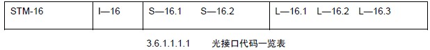 代碼的第一位字母表示應用場合:1表示局內通信;S表示短距離局間通信;L表示長距離局間通信。字母橫杠后的第一位表示STM的速率等級:例如1表示STM‐1;16表示STM‐16。