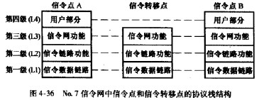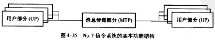 用戶部分是各類信令收發和處理模塊的總稱,負責信令消息的生成、語法檢査、語義分析和信令控制過程。這些模塊通常屬于交換機控制系統的一部分或一個子系統,體現Na7信令系統對不同應用的適應性和可擴充性。ITU-T目前已定義的用戶部分有電話用戶部分(TUP)、數據用戶部分(DUP)、ISDN用戶部分(ISUP)等。No.7信令系統的基本功能結構如圖4-35所示。