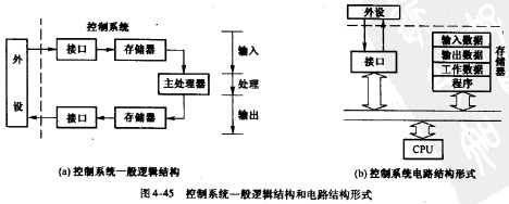 SPC控制系統中,外設輸人的信號暫時存儲在存儲器,由處理器在適當的時刻讀出和處理,其輸出過程與輸人過程相似。圖4-45給出了計算機控制系統的一般邏輯結構和電路結構。接口的作用是將外來信息轉變成適合處理器處理的數據形式,或反之。接口數據寫人存儲器的過程常需借助于處理器,這既可以由接口中獨立的處理器完成,也可由控制系統的主處理器完成。接口數據的讀取和存儲有相應的操作程序,常稱為接口驅動程序。接口驅動程序的調用有查詢方式和中斷方式,兩種方式對外界信號的響應速度不同。査詢方式時,接口驅動程序由操作系統定時調用,其優點是可以在操作系統控制下運行,因而管理比較容易。