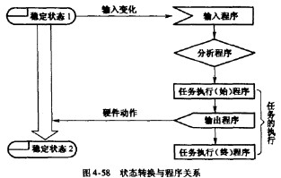 內部任務執行和輸出處理即輸出命令部分。根據分析結果,發布一系列控制命令,命令對象可能是內部某些任務,也可能是外部硬件。控制狀態轉移的程序叫任務執行程序。在任務執行中,把與硬件有關的程序從任務執行中分離出來,作為獨立的輸出程序,這樣做的目的是為了實現硬件動作和軟件動作的配合,因為硬件動作滯后于軟件動作。