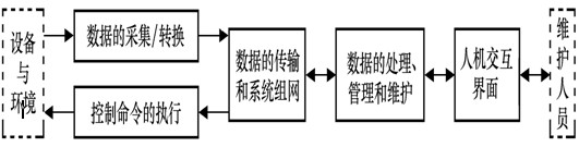 由圖所示,監(jiān)控的工作過程是雙向的,一方面,被監(jiān)控的電源設(shè)備和環(huán)境量需經(jīng)過采集和轉(zhuǎn)換成便于傳輸和計(jì)算機(jī)識(shí)別的數(shù)據(jù)形式,再經(jīng)過網(wǎng)絡(luò)傳輸?shù)竭h(yuǎn)端的監(jiān)控計(jì)算機(jī)進(jìn)行處理和維護(hù),最后可通過人機(jī)交互界面和維護(hù)人員交流;另一方面,維護(hù)人員可通過交互界面發(fā)出控制命令,經(jīng)過計(jì)算機(jī)處理后,傳輸至現(xiàn)場經(jīng)控制命令執(zhí)行機(jī)構(gòu)使電源設(shè)備以及環(huán)境完成相應(yīng)動(dòng)作。