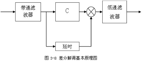 這里主要介紹非相干解調中的差分解調。非相干差分解調,利用接收信號以及其時延信號進行解調,基本原理如圖3-8所示。