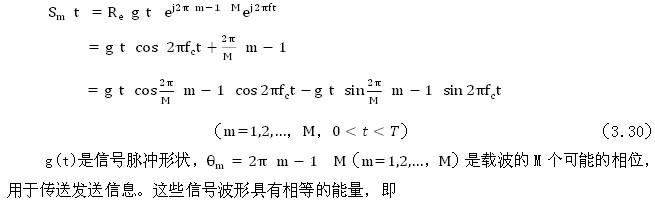在數(shù)字相位調(diào)制中,M個(gè)信號波形可表示為