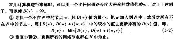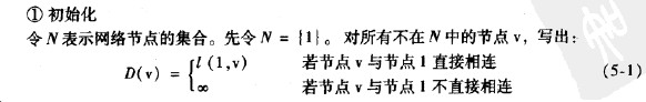令D(V)為源節點(節點1)到節點v的距離,它就是沿某一路徑的所有鏈路的長度之和。再令j(i,j)為節點i至節點j之間的距離。整個算法有以下步驟。