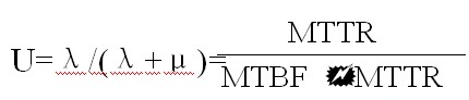 (4) 系統不可利用度(U):在規定的時間和條件內,系統喪失規定功能的概率,通常我們假設系統在穩定運行時,μ和λ都接近于常數,則