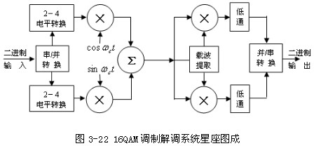 產(chǎn)生矩形MQAM信號(hào)的原理框圖如圖3-22所示: