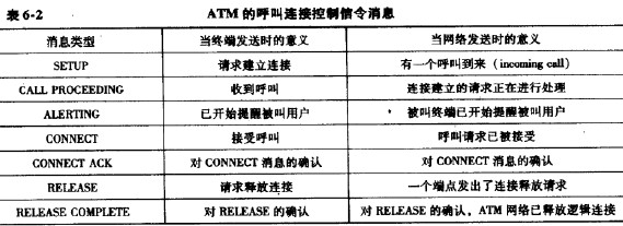 用于呼叫連接建立和釋放的UNI信令消息(SignalingMessage)主要有7種,各種消息的含義如表6-2所示。需要指出的是,信令消息是通過信令虛通路來傳送的。消息的內容包括呼叫參考值、消息類型、消息長度以及信息元素或參數(如被叫/主叫用戶地址、連接標識VPI/VCI、用戶信元速率、寬帶承載能力和服務質量參數等)。