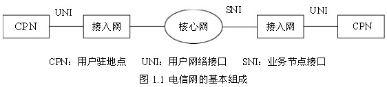 整個電信網從地理上可以分成三部分,即核心網(CN)、接入網(AN)和用戶駐地網(CPN),如圖1.2所示。其中核心網包括長途網(長途端局以上部分)和中繼網(長途端局與市話局之間以及市話局之間的部分)。按照G..902的定義,接入網是由業務節點接口(SNI)和用戶網絡接口(UNI)之間的一系列傳送實體(如線路設施和傳輸設施)組成的,是為供給電信業務而提供所需傳送承載能力的實施系統,可經由管理接口(Q3)配置和管理。