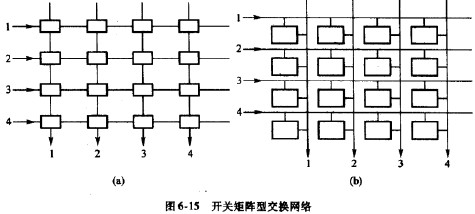 NxN的開關矩陣具有妒個交叉接點,圖6-15(a),(b)給出了兩種實現方式,均以4x4為例。