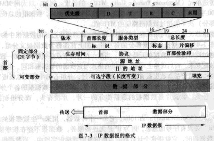 3)服務類型(TypeofService):占8bit,用來獲得更好的服務,其意義見圖7-3的上面部分所示。