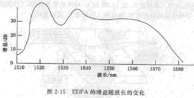 EDFA的增益隨波長的變化有一定的傾斜和起伏,如圖2-15所示。通常采用以下幾種方法提高EDFA的增益平坦度: